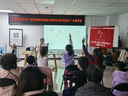 “京师万物”科普宣讲团在志强南园、蓟门里及红联东村社区主要面向青少年开展多样的生物科学兴趣课程:在志强南园社区,宣讲团开展的《人体器官知多少?》助力青少年了解自身身体结构,以《提取草莓DNA》《蓝色海洋的奥秘之海绵宝宝的真面目》等课程,结合微观DNA实验的动手实践与海洋相关生物的知识干货,激发青少年的科学探索兴趣;在蓟门里社区和红联东村社区,宣讲团开展了《弹跳的泡泡》《酵母的力量》等课程,将理论知识与实验操作相结合,唤起青少年对科学好奇心与探索欲,培养实践动手能力。