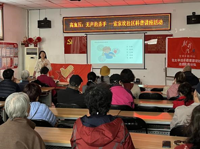 宣讲团在北太平庄社区和索家坟社区的主要授课对象为中老年人,开展的《战胜帕金森 从了解开始》和《高血压——无声的杀手》等课程,聚焦于中老年人关心的慢性疾病防治,宣讲团成员为居民详细讲解帕金森和高血压的相关知识,包括疾病成因、症状、预防及治疗方法等,给社区的爷爷奶奶带去生动而实用的课堂。