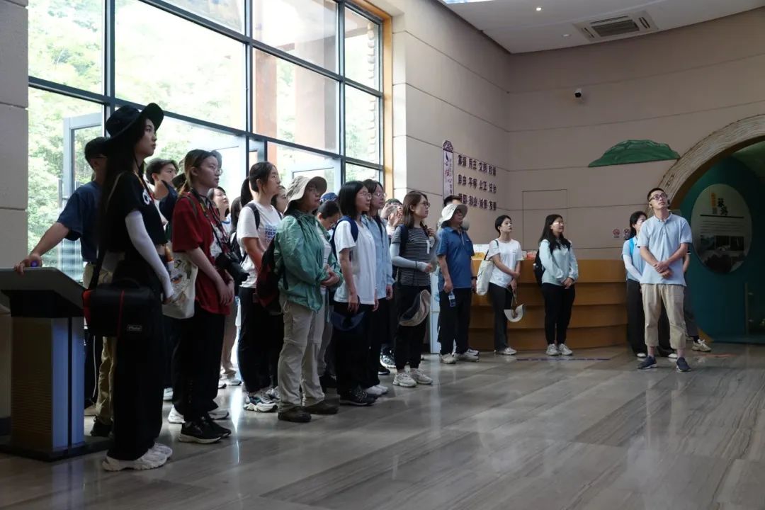 接着,在黄桥保护站站长刘西的引导与讲解下,团队进入馆内深入探访和学习。从乌岩岭的优美风光与生物多样性,到黄腹角雉的科研与保护,再到一代代科研工作者的辛勤耕耘与薪火传承,学员们兴趣盎然,多位老师和同学积极沟通交流,收获颇丰。