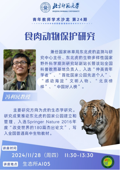 bat365在线唯一官网登录官网冯利民教授则以“食肉动物保护研究”为题,深入浅出地阐述了食肉动物种群、种內及种间关系、我国东北虎豹生态环境、生活习性以及面临的威胁,并提出了针对性的保护措施和建议,有效促进学科交叉和融合。
