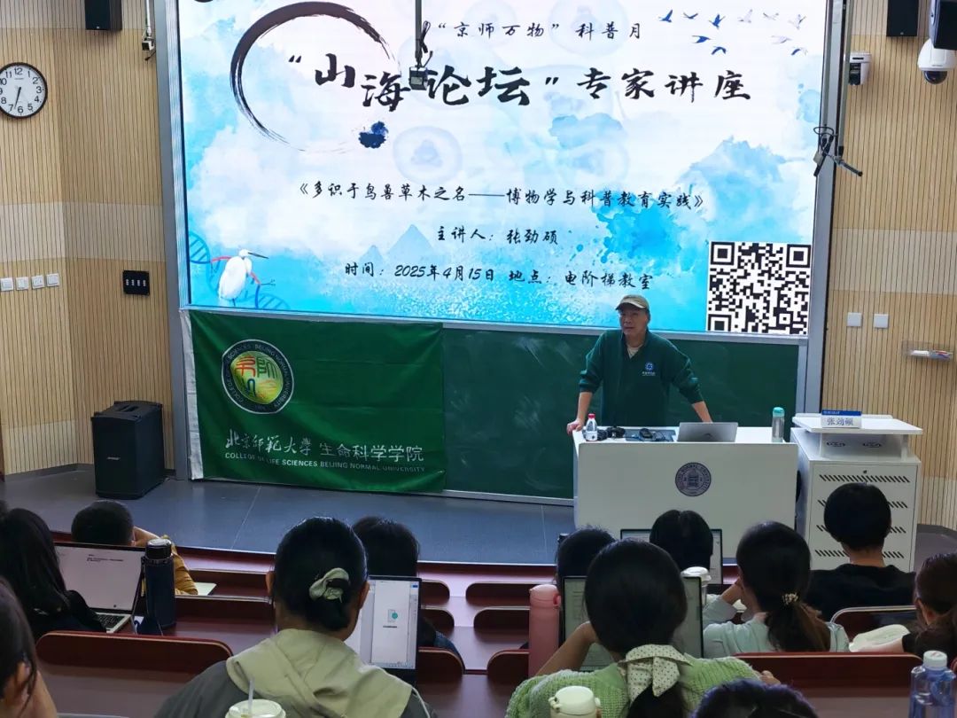 2025年4月15日晚上18:30,第六期“山海论坛”科普讲座精彩开讲,国家动物博物馆馆长张劲硕老师带来一场题为《多识于鸟兽草木之名——博物学与科普教育实践》的知识盛宴。