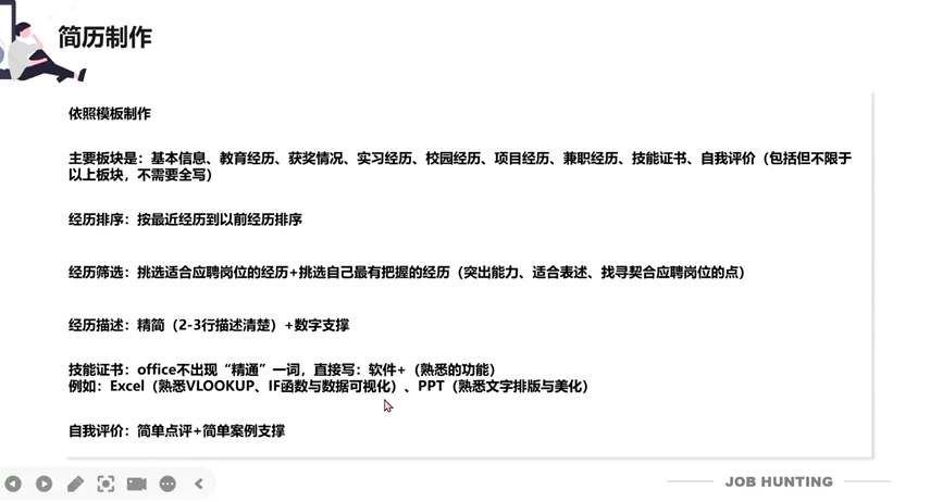 首先,杨心爱同志强调,简历是求职的“第一门面”,需以“简洁、专业”为原则。她建议求职者先梳理大学期间的教育背景、实习经历、证书技能等,形成详细清单,并通过“评价 + 案例”模式完善自我评价部分。关于简历投递,杨心爱同志特别强调“电子资料预处理”的重要性。她建议求职者提前扫描身份证、成绩单、资格证书等文件,按“单份文件+整合 PDF”分类存储,避免因资料不全耽误投递进度。在投递渠道方面,学校官方平台“京师就业”公众号、学院招聘群是核心资源,同时以智联招聘、Boss 直聘等第三方平台为辅助,可扩大信息覆盖面。