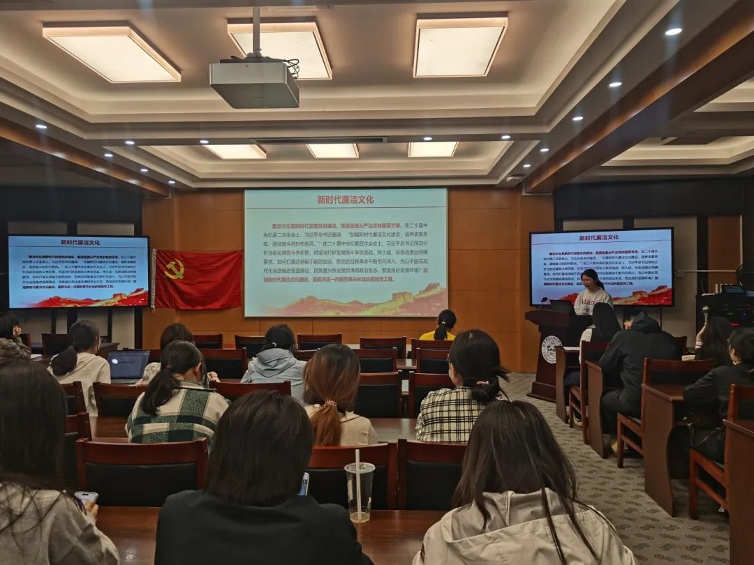2025年4月26日19:30,崇德党支部联合化学学院24级硕士生一班党支部在化学楼二楼学术报告厅开展理论联学活动,活动主题为:新时代廉洁文化,全面把握廉洁文化建设总体要求。本次会议由化学学院24级硕士生一班党支部鹿柳同志主持。