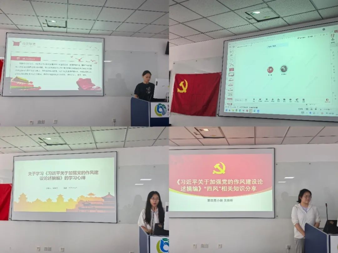 党课结束后,各党小组推荐“学习之星”就近期学习《习近平关于加强党的作风建设论述摘编》的心得进行成果展示,通过PPT讲解,同学们分享了对作风建设内涵的理解以及对践行优良作风的思考,进一步深化了学习成果,促进了支部成员之间交流互鉴。