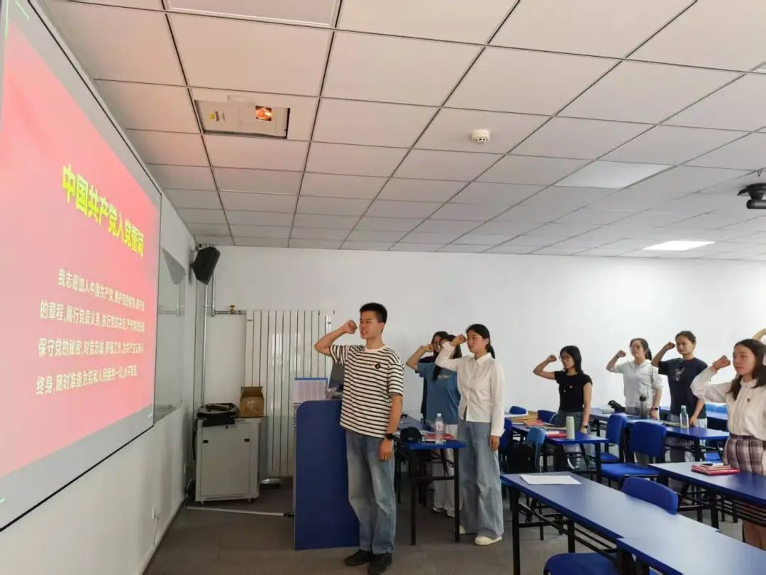 会议最后,李强书记带领全体毕业生党员重温入党誓词,高举右拳,庄严宣誓,铿锵有力的誓言回荡在会场,提醒每一位毕业生党员时刻铭记入党初心,永葆政治本色。