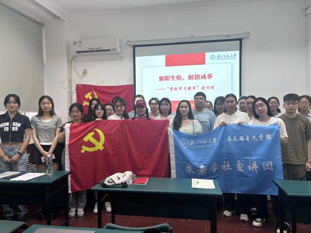 随后,邀请求索学社宣讲团黄琪越同志进行名为《聚阳生焰,握指成拳——“党纪学习教育”进行时》的主题宣讲。纪律严明是马克思主义政党的重要建党原则,是维护党的团结和统一的必然要求。黄琪越同志以党的建立和发展的历史为脉络,为大家依次介绍了土地革命战争时期、延安时期、解放战争时期、新中国成立初期、改革开放初期以及党的十八大以来的纪律教育。她强调,纪律严明是马克思主义政党的显著标志和独特优势,也是我们党加强自身建设、不断发展壮大的重要历史经验。新修订的《中国共产党纪律处分条例》对党的十八大以来纪律建设的理论创新、实践经验、制度规矩进行总结、融合和升华,是新时代党的纪律建设的“集大成之规”。