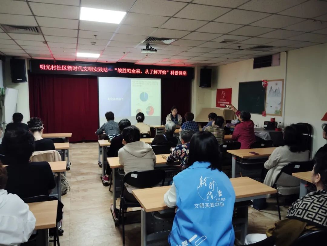 宣讲团成员李青宸同志和马小惠同志在北太平庄社区、索家坟社区等6个社区,面向老年人群体,结合资料,解析疾病机理以及防范措施,系统讲解帕金森病的早期信号、治疗进展及康复训练,希望居民在日常生活中能够有所留意帕金森病的发病征兆并及早干预;同时通过各种互动,帮助居民掌握日常锻炼方法来防范帕金森病。