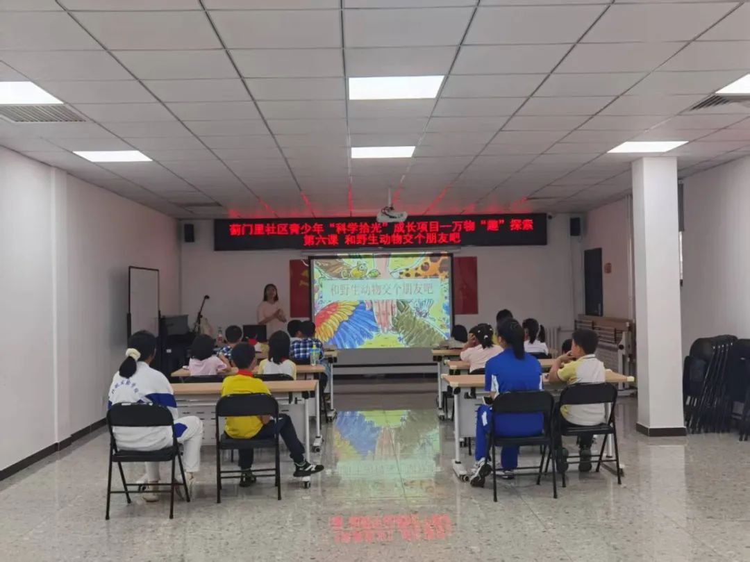 钏仕琼、胡佳瑞同志在蓟门里社区,为青少年讲解趣味生态课程。宣讲团成员通过图片展示,让孩子们萌生浓厚的兴趣;通过介绍各种野生动物的知识,让孩子们明白野生动物保护的意义;通过故事讲述,引导学生思考栖息地保护的重要性。孩子们在课堂上踊跃提问,同志积极解答问题。本次课程激发了孩子们探索自然的热情和对野生动物的保护之情。