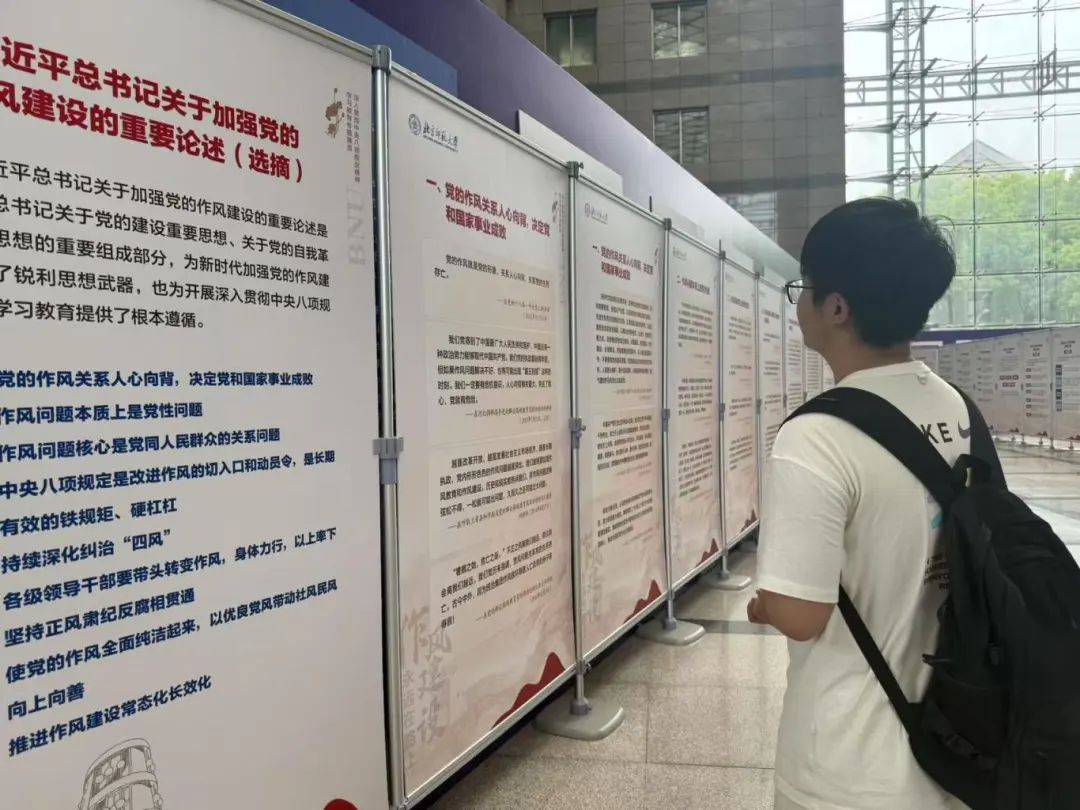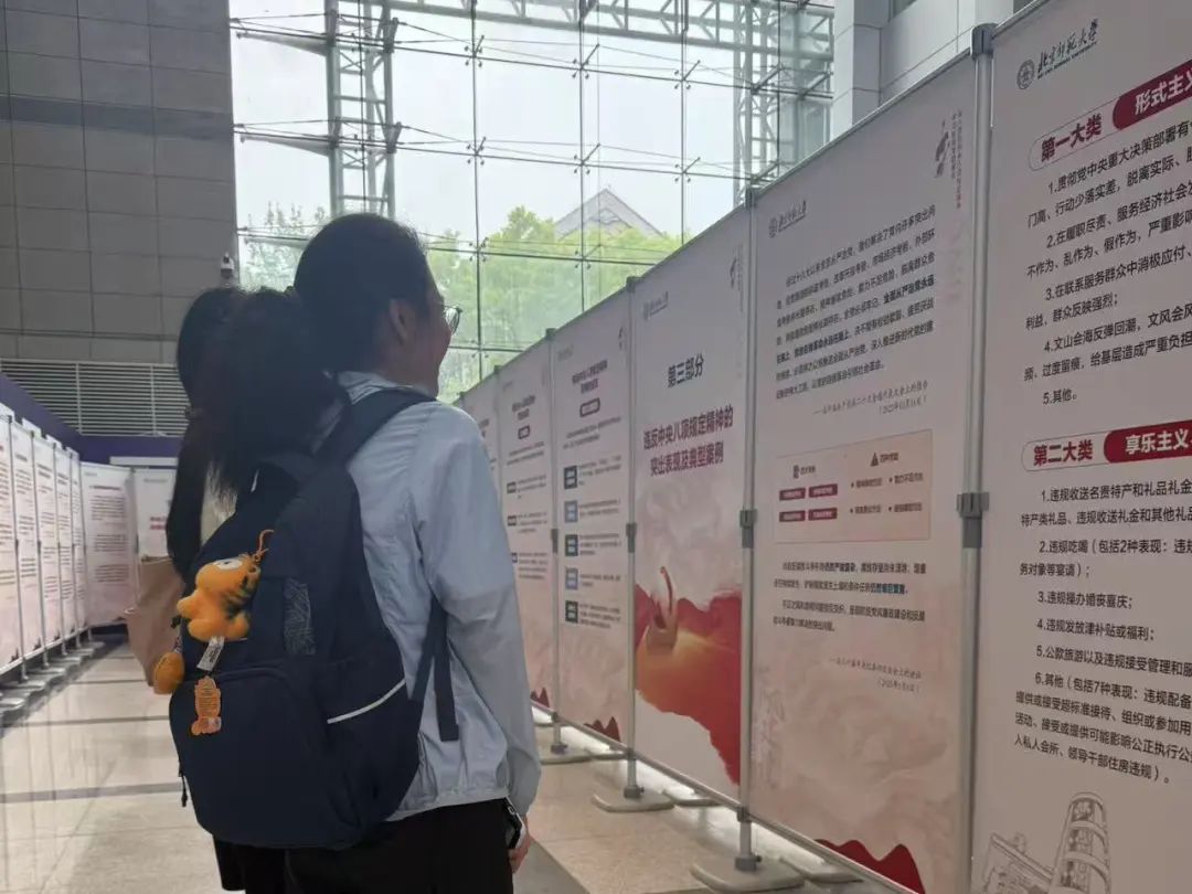 为深入学习贯彻习近平总书记关于党的自我革命的重要思想及作风建设重要指示精神,全面落实学校党委关于加强纪律建设的部署要求,持续筑牢青年党员拒腐防变思想根基,2025年6月26日下午,bat365在线唯一官网登录官网励学党支部组织党支部成员前往学校主楼四季厅,集体参观“作风建设永远在路上——深入贯彻中央八项规定精神学习教育专题展览”。
