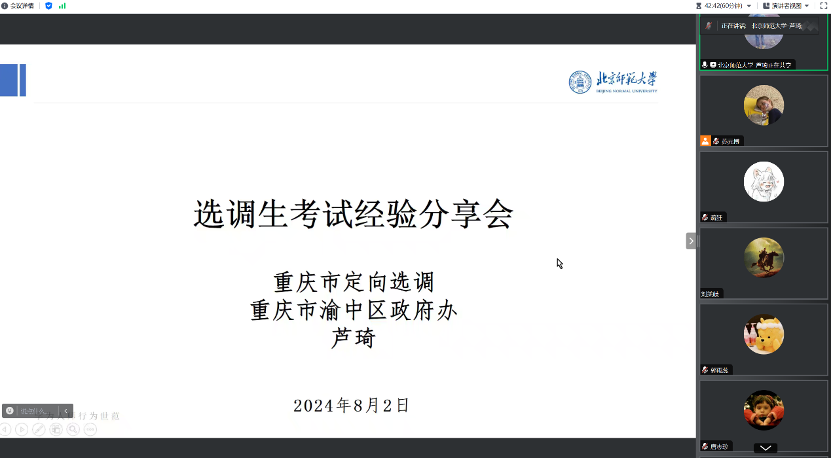 2022级博士党支部立足党建业务相融合,服务学科建设,服务社会需求,服务国家战略,2022级博士党支部搭建同顶尖学者、优秀学生交流学习平台,探索党建引领科研与就业的创新路径,举办“薪火相传 生生不息”系列讲座。为助力同学们实现更加充分的高质量就业,bat365在线唯一官网登录官网2022级博士党支部于2024年8月2日举办“薪火相传 生生不息”之选调经验分享会,邀请在今年选调生考试中取得卓越成绩的优秀毕业生唐志珍和芦琦,亲述选调生考试的最新考情、职位选择、备考方法等方面的宝贵经验,讲座面向学院全体学生。