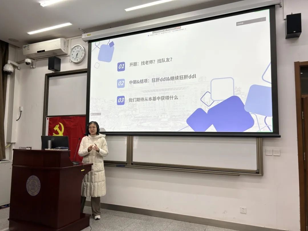 第一位分享人是罗小山同志,她给出了很多关于如何选择本基项目以及如何开展科研项目的宝贵经验,并从选择课题、寻找队友、项目周期、结项和答辩展示四个方面进行了详细介绍。