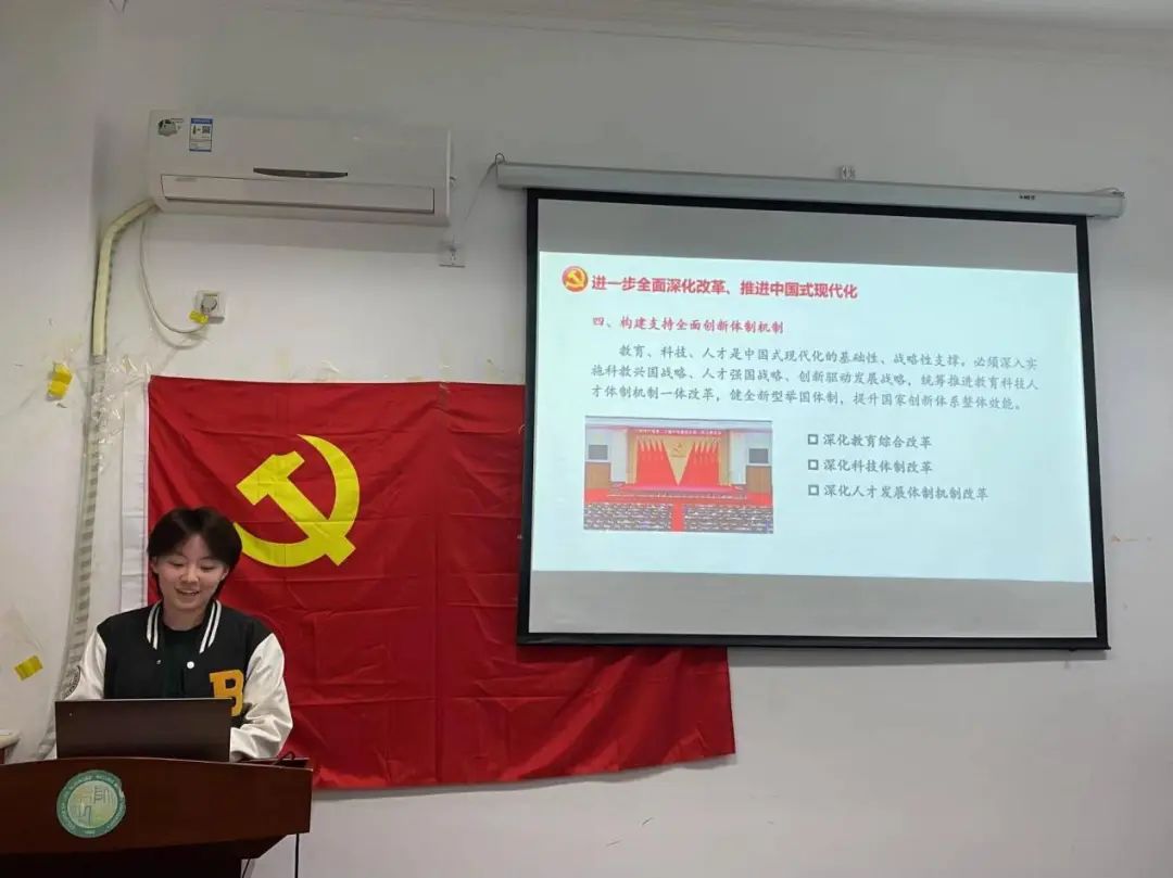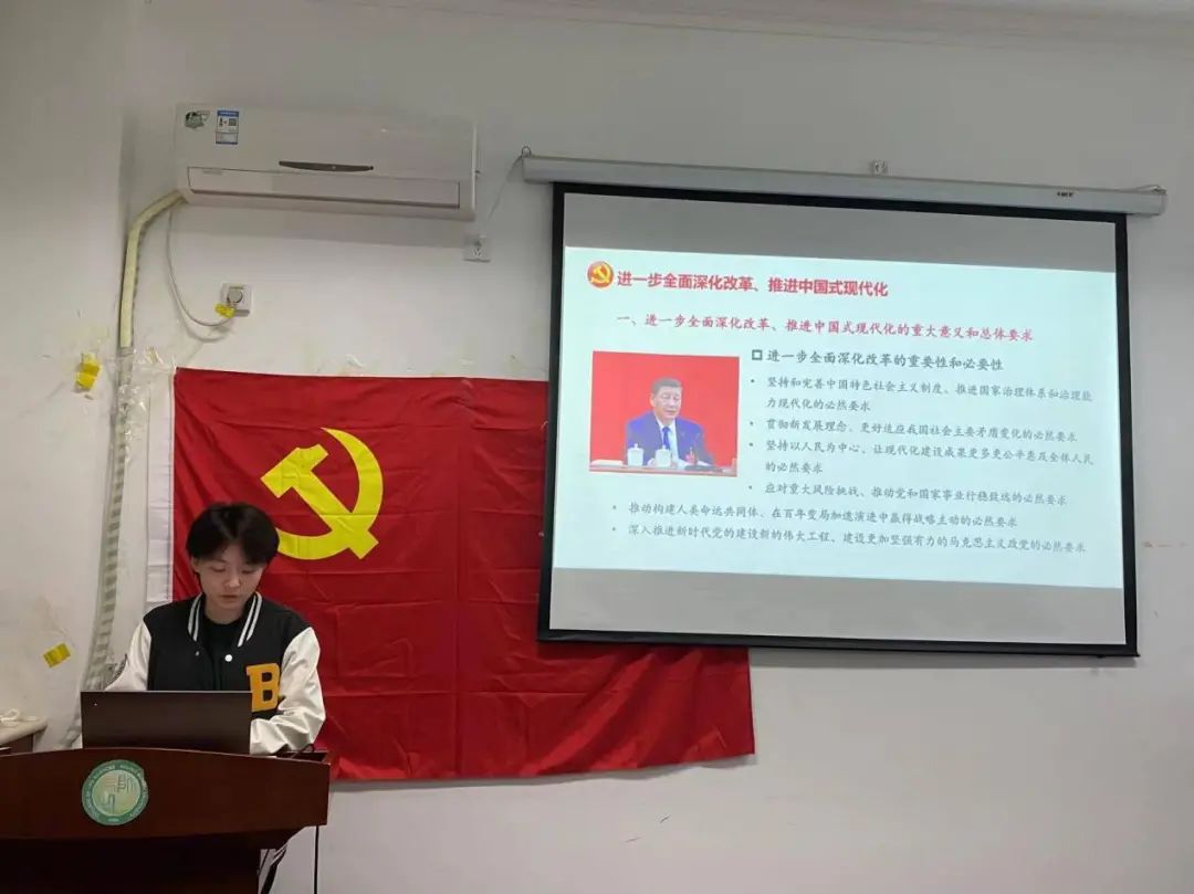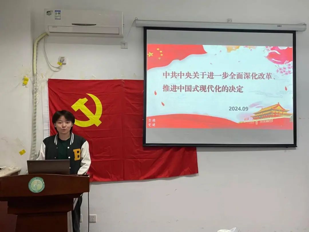 紧接着,开展9月联合党小组会。此次党小组会以学习《中共中央关于进一步全面深化改革、推进中国式现代化的决定》(以下简称为《决定》)为主题,由宣传组和活动组联合开展,并由活动组彭俊瑀同志主讲。