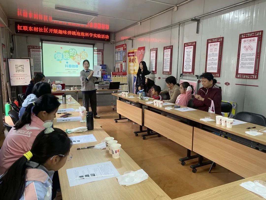2025年4月19日上午9:00,乐育党支部继续为红联东村社区的小朋友们带来了《弹跳的泡泡》科普实验课。本次科普课程由乐育党支部苏慧岚同志担任主讲老师、王纪阳同志担任助教老师,16名蓟门里社区的小朋友们报名参与了本次课程。