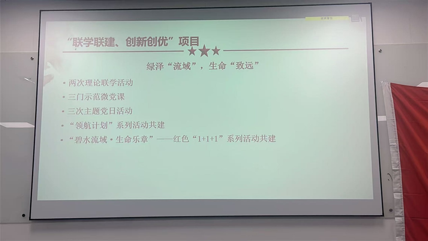 为深入支部成员了解,促进后期合作顺利开展,环境学院流域综合管理教研所硕士党支部书记黄纤玉同志详细介绍了该支部的组织架构及开展的特色党建活动。黄纤玉书记表示对“两联两创”共建项目充满信心,期待两党支部成员可以互相合作,积极参加两个支部举办的相关活动,提高活动的完成度和参与度。