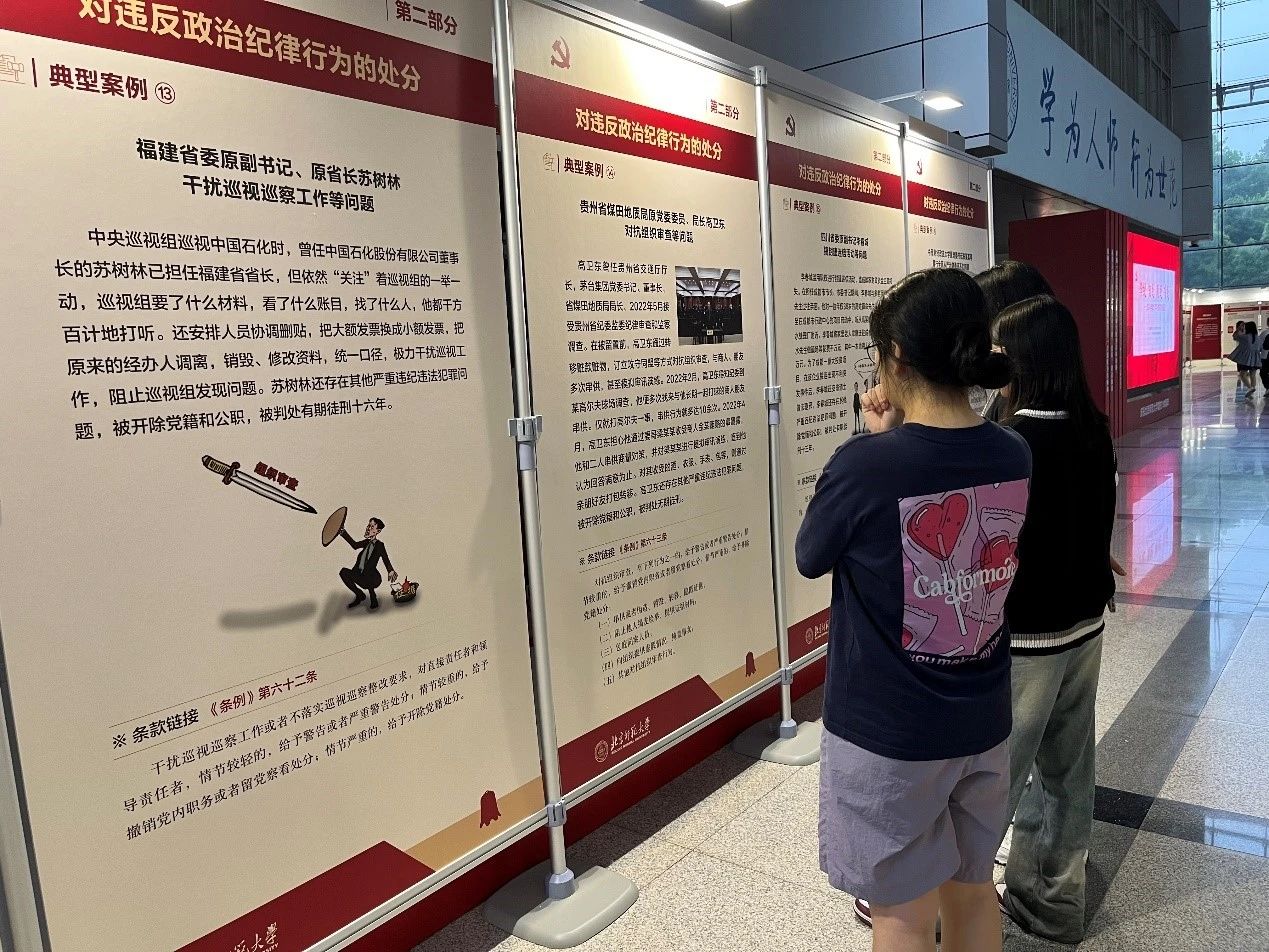 为贯彻落实习近平总书记关于党纪学习教育的重要讲话和重要指示精神,帮助学校广大党员干部师生深化对《中国共产党纪律处分条例》的掌握和理解,按照学校党委有关党纪学习教育工作部署,2024年6月7日,bat365在线唯一官网登录官网乐育党支部与教育学部2023级研究生第九党支部共同参观“学纪 知纪 明纪 守纪——2024年党纪学习教育专题展览”。