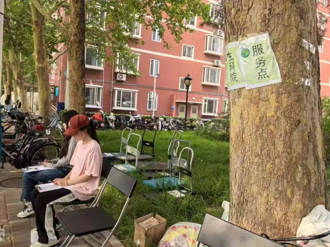 7月5日和7月6日,志愿者们在学二楼、学三楼的楼下户外空地进行志愿服务,服务内容包括帮助学院同学搬运行李、照看行李、发放防暑药、创可贴、饮用水、冰贴、行李贴、雨衣等应急物资。志愿者的尽力配合与热心帮助使得本次行李搬运和宿舍搬迁工作顺利完成。