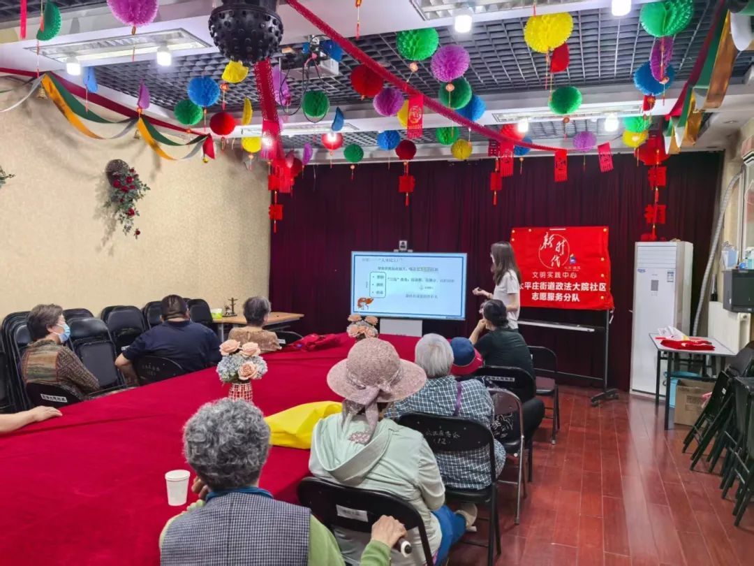2025年5月21日,崇德党支部沈彤彤同志为政法大院社区十余名中老年居民开展《人体器官知多少》的健康科普课程。