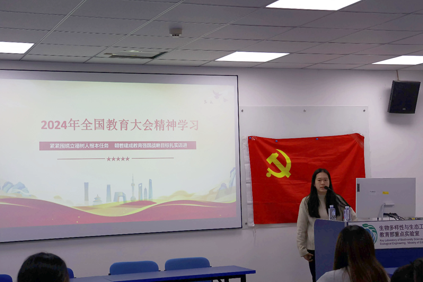 2024年12月14日9:30,崇德党支部于生态所A105教室顺利开展支书讲党课活动。本次会议由崇德党支部书记张瑜同志主持,本次党课的主题是:2024年全国教育大会精神学习——紧紧围绕立德树人根本任务,朝着建成教育强国战略目标扎实迈进。