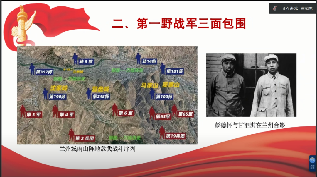 2024年7月25日晚20:00,立身党支部的黄家晖同志于线上开展本学期第七期主题为“兰州战役”的"立身说"红色文化分享活动。
