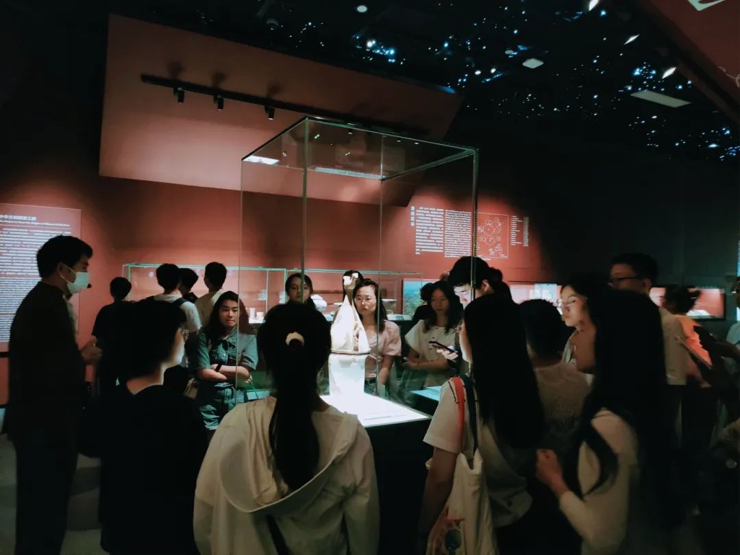 在庄严肃穆的中国考古博物馆前,支部成员们合影留念,随后在讲解员的带领下进入博物馆。序厅上方,“历史是最好的教科书”几个大字引人注目——习近平总书记的这句名言提醒我们,无论未来从事何种职业,都要以史为鉴,从历史中汲取智慧与力量。在见证了党的二十大召开的“星空穹顶”的照耀下,在结构精巧的殷商马车的伴行下,支部成员们缓步走过序厅的“历史大道”,开启了追寻中华文明之根的旅程。