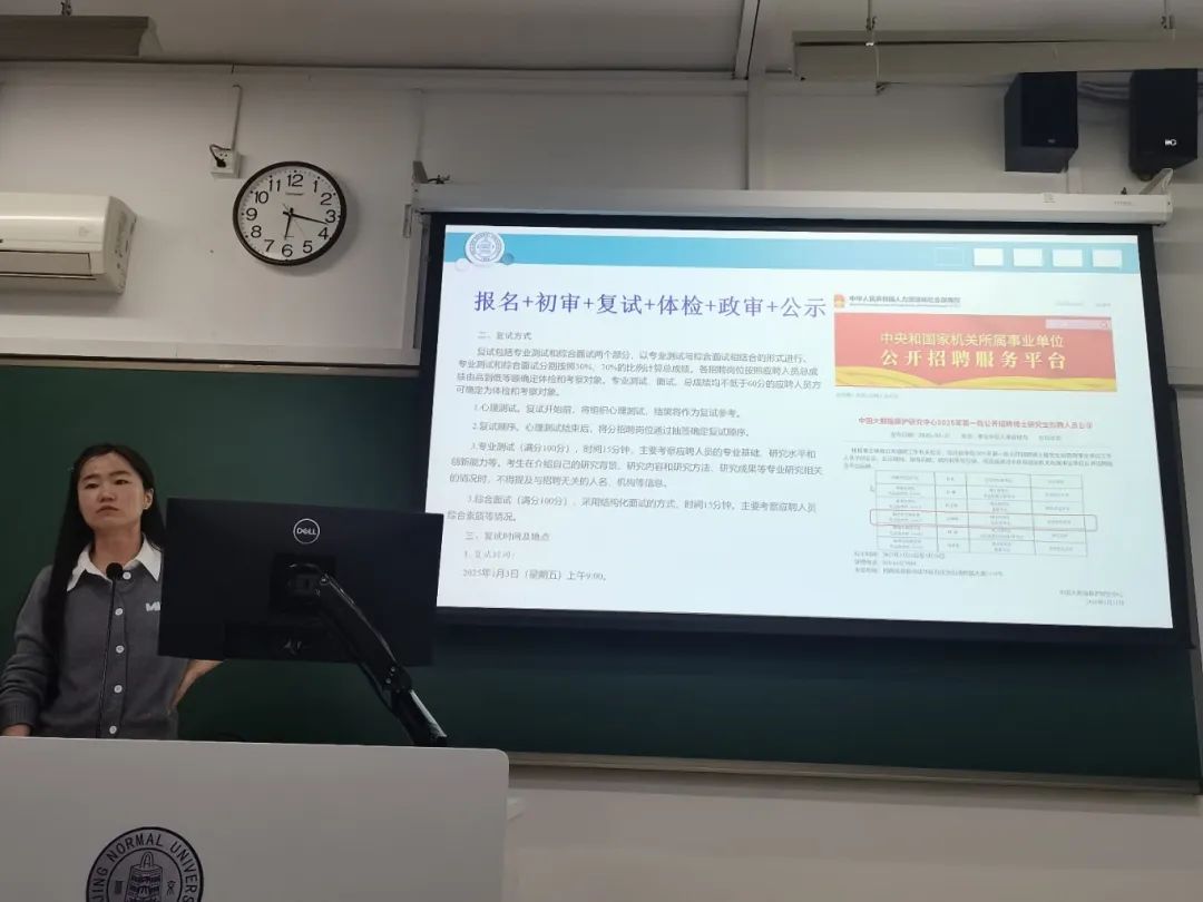 之后王倩倩师姐介绍了她博士毕业求职的情况。师姐表示选择该工作主要基于自己看重的几项考虑,比如是否打卡坐班、是否稳定、是否有利于发展等。师姐在读博之前在高中任教,考虑到未来发展等选择回到学校读取博士。最后在一众offer中基于上述因素选择了生态和全国大熊猫保护研究中心的职位。
