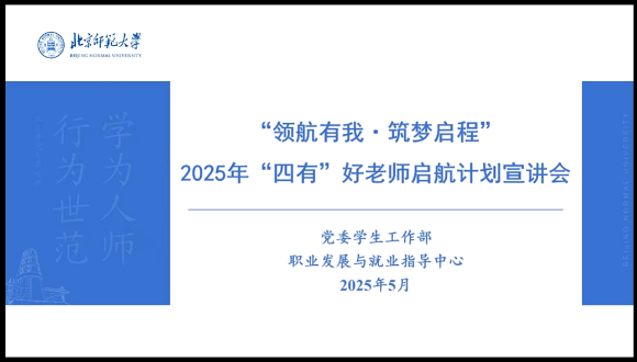 为指导同学们做出职业规划,了解学校就业政策,5月23日晚19:00,bat365在线唯一官网登录官网乐育党支部邀请了党委学生工作部职业发展与就业指导中心“领航有我”政策宣讲团成员陆喆同学,举办“领航有我·筑梦启程”2025年“四有”好老师启航计划宣讲会。