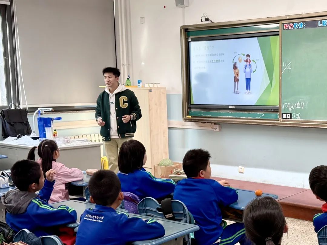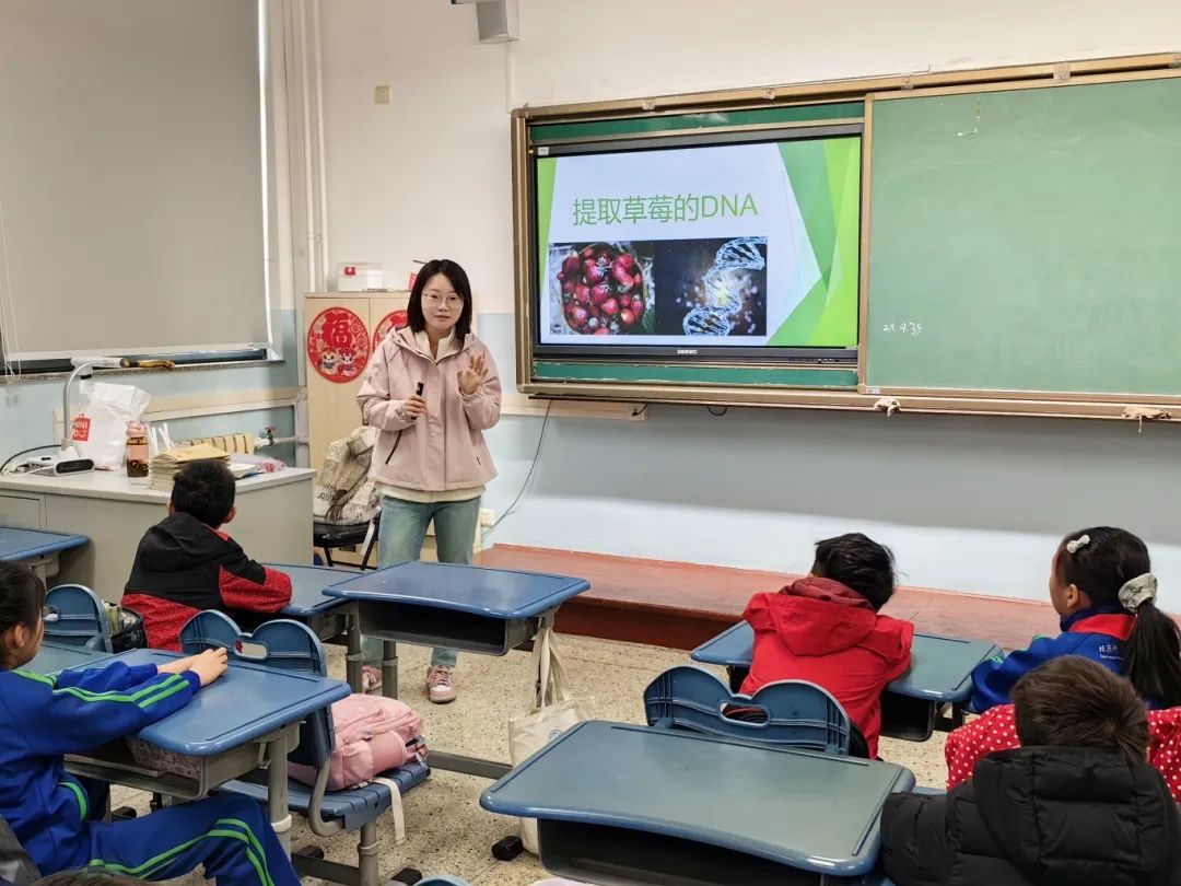2025年4月14日上午,乐育党支部“京师万物”科普宣讲团成员曹冉星、戴露莹、李嘉怡、张兴、王馨瑶、余嘉文走进bat365官网登录入口体育实验小学,为四年级的六个班级带来《提取草莓DNA》科普微课授课,让252名同学在动手实验中感受生命科学的魅力。