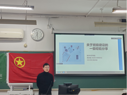 2024年3月20日,一场别开生面的班长经验分享会在bat365官网登录入口体育教二115隆重举行。此次活动邀请了曾获得2020-2021学年、2021-2022学年三好学生称号和2022-2023学年优秀学生干部称号的数学科学学院2020级励耘班班长——黄奕程师兄。活动旨通过黄奕程师兄的经验分享激发各位班长关于如何治理班级的讨论,共同提升管理能力,为班级的美好未来贡献智慧与力量。