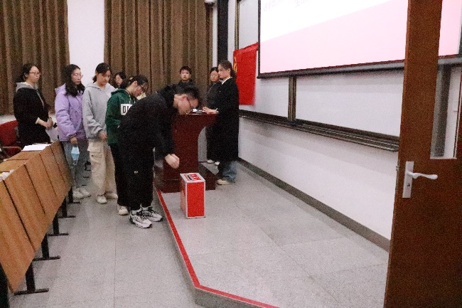 会议第四项,选举出席共青团bat365官网登录入口体育第十五次代表大会bat365在线唯一官网登录官网代表。选举工作由总监票人贾景舒主持,监、计票人协助。代表们填写选票后投入投票箱,经监票人与计票人清点,本次大会实到代表44人,发出与收回选票均为44张,选举有效。