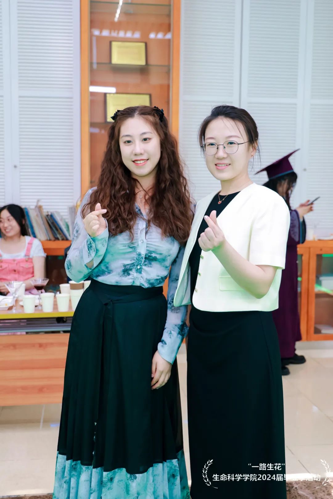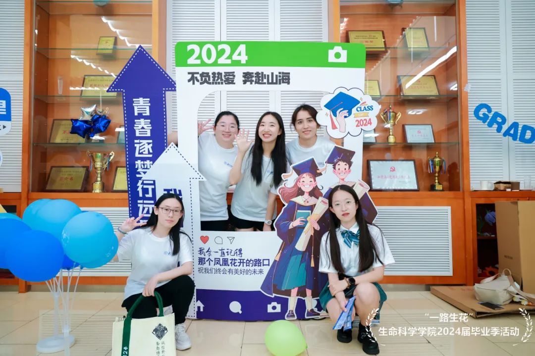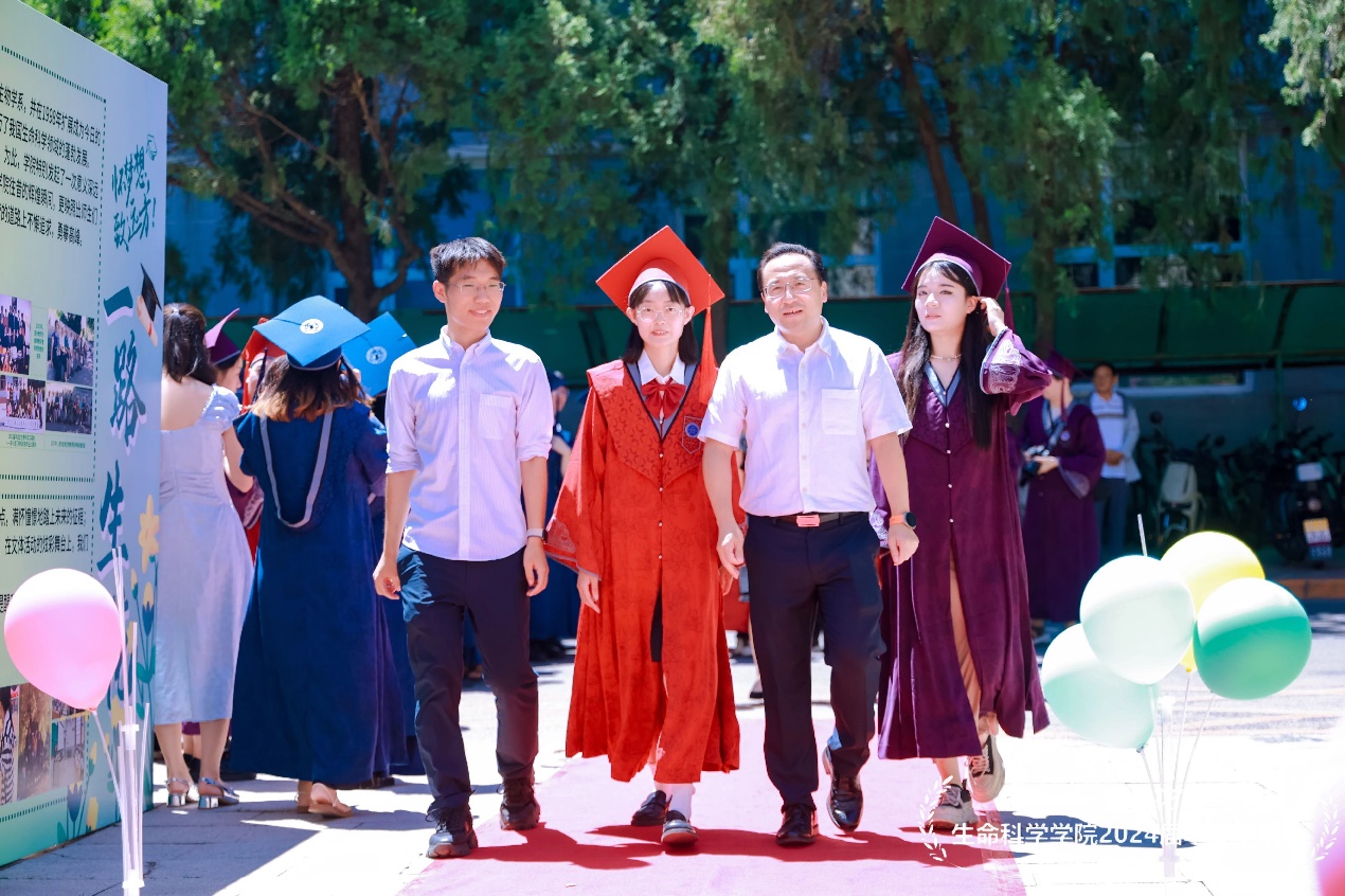 毕业典礼和毕业合影留念结束后,2024届毕业生换上了靓丽帅气的服装,来到了生科院前广场的红毯仪式现场,迎接这份独属于他们的毕业之路。于馨淇、金紫怡、于涵三位毕业生担任红毯仪式主持人。