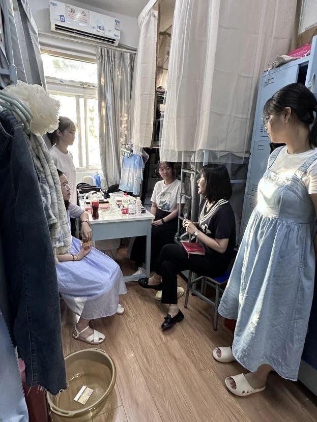 交流结束后,商瑜老师前往学生宿舍参观,并暖心地给同学们分发月饼。在宿舍,商瑜老师又与同学们展开了亲切的谈话,强调宿舍建设和协作问题,希望班内的不同宿舍之间也能加强交流,互相帮助,将班级建设成一个温暖的大家庭。