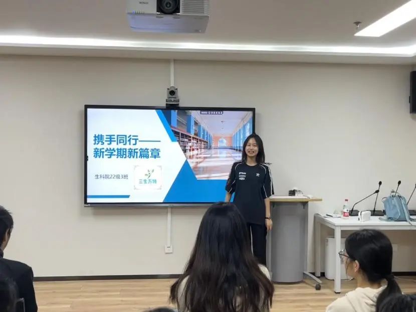 2024年9月11日,生科院2022级3班举办“携手同行——新学期新篇章”主题班会。班会上首先进行了班团委换届,班长公布新任班委竞选名单,候选人发表竞选演讲并推选出新一届班委。每位新任班委上台发言,讲述了未来的工作计划,并表示要以身作则,带领班级共同进步。