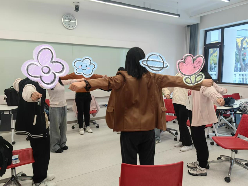 随后,同学们依次进行了自我介绍,并用一种颜色来形容自己的心情,分享了自己最近的心情状态。紧接着,一个有趣的环节开始了:每位同学都做出一个动作,这个动作或许代表着他们内心的某种情绪或态度。通过这一环节,大家不仅展示了自我,还增进了彼此间的了解与共鸣。