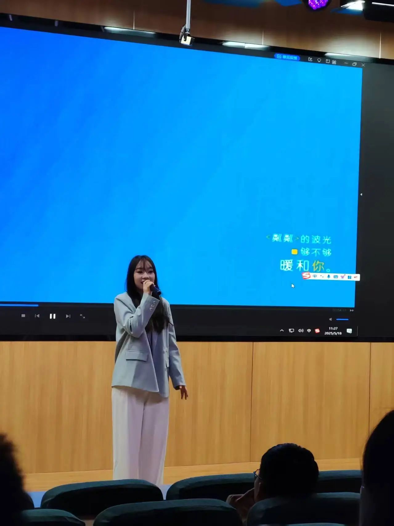 比赛现场,观众们随着旋律挥舞荧光棒,与选手合唱经典片段,掌声、欢呼声此起彼伏。中场休息时,校十佳歌手大赛冠军陈浥宁带来的《克卜勒》更是以灵动的声线点燃全场。